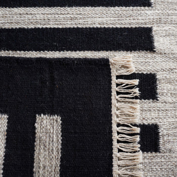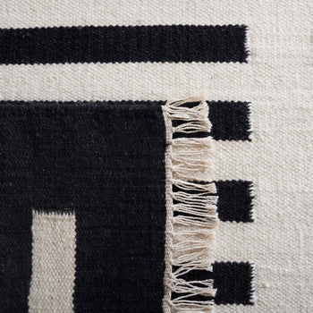 This rug's minimalist pattern allows it to seamlessly integrate into a modern decor while adding a touch of sophistication. The flat weave technique ensures a durable, low-profile rug that's suitable for high-traffic areas and under furniture. Elevate your living space with this elegant and chic centerpiece, designed to complement a modern lifestyle with ease.