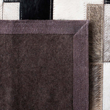 Fashion-forward and textural, the genuine hide carpets in the Studio Leather Collection are stunning examples of fine craft art. Designs in this collection range from classic square patchwork rugs to innovative compositions featuring appliqued geometric cutouts. Studio Leather rugs are impeccably hand-stitched creating contemporary works of art in marvelous natural cowhide tones and vivid primary colors. The eye-catching centerpiece for modern, or rustic-chic decor.