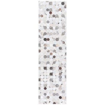 Fashion-forward and textural, Studio Leather Rugs are crafted with the finest cowhides and leather. Designs range from classic square patchwork rugs to innovative, appliqued geometric cutouts. Each is hand-stitched to create a contemporary work of art in natural cowhide tones and vivid primary colors.