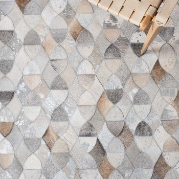 Fashion-forward and textural, Studio Leather Rugs are crafted with the finest cowhides and leather. Designs range from classic square patchwork rugs to innovative, appliqued geometric cutouts. Each is hand-stitched to create a contemporary work of art in natural cowhide tones and vivid primary colors.