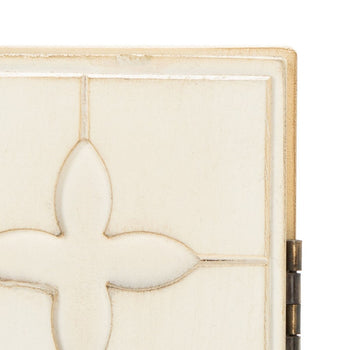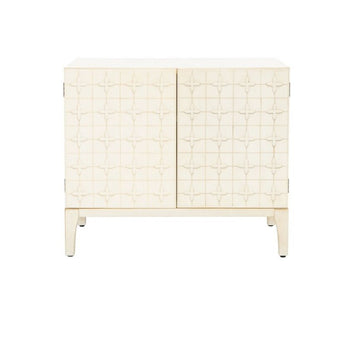 Timeless Moroccan tiles are given a contemporary-chic update in this elegant Sula Chest. Sula's two doors and one shelf keep clutter organized and hidden, while an antique white finish effortlessly accents any room's color scheme.