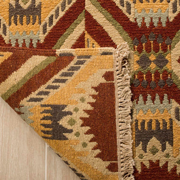 The meticulous construction technique not only ensures durability but also adds a luxurious texture underfoot, inviting you to sink your toes into its plush fibers. Whether anchoring your living room furnishings or adding an artistic touch to your office, this wool area rug is an investment in timeless style.