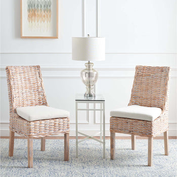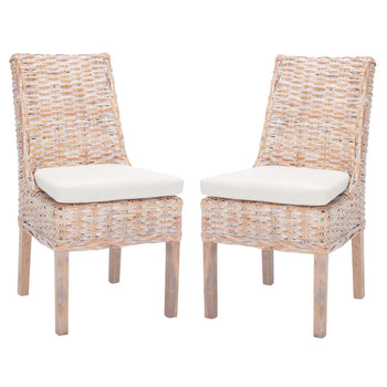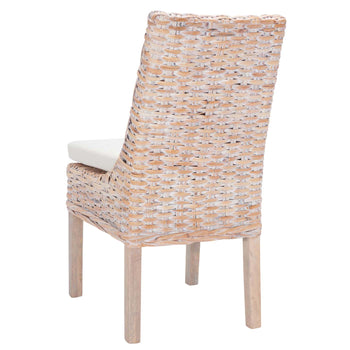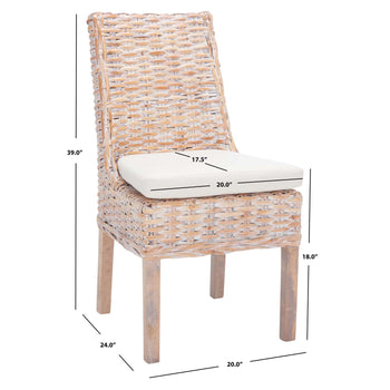 A classic silhouette is redefined with coastal-chic style in this Suncoast Armchair. Suncoast's sloping contoured profile gets an additional layer of decorative depth in natural whitewash rattan, and its plush white cushion creates a comfortable aura. Sold in sets of two.