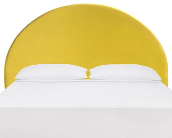 An icon of lavish living, this Sunnira Arched Headboard is a masterclass in high-fashion decadence. Sunnira's bright mustard tone makes a sunny statement in any contemporary bedroom, and its plush velvet upholstery is absolutely luxurious. Sized for a standard full bed.