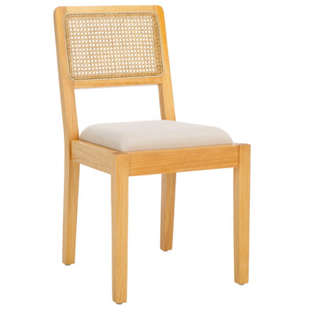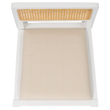 Introducing our Suzetta Dining Chair, an essential statement piece for any dining room setting. Crafted with the finest quality wood and rattan, this dining chair exudes a mix of contemporary style and traditional charm. The natural rattan tone paired with the crisp, white cushion creates an ideal harmony of color, effortlessly enhancing any interior setting. The Suzetta Dining Chair not only offers you unrivaled comfort but also stands as a testament to impeccable craftsmanship and enduring design. Elevate your dining experience with comfort, sophistication, and a touch of tropical flair with our Suzetta Dining Chair.