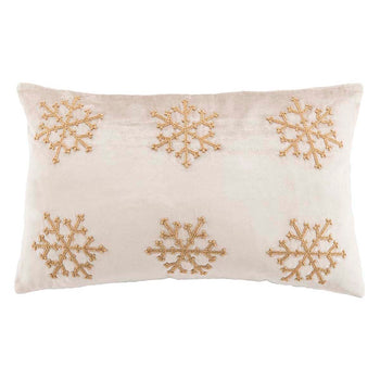 This holiday Safavieh Sydnee Snowflake Pillow embraces the wintry qualities of seasonal decor with shimmering beige and lustrous gold tones. Detailed with snowflake motifs, a blend of viscose and cotton yarns brings a touch of softness and comfort to any contemporary living room or family room. Sydnee Snowflake's wonderland inspired look adds distinctive charm to trend smart home Decor.