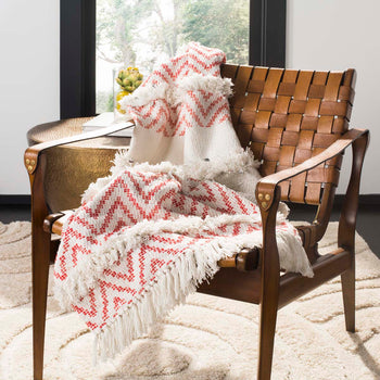 The Sydney Fringe Throw is an excellent way to incorporate dimensional accents into trendy contemporary Decor. Structured chevron patterning displays a warm blend of orange and white hues, with bands of one inch shag and shimmering sequins boasting texture rich embellishment. Trimmed with knotted fringe and steeped in modern style, Sydney is a must have decorative throw for the loveseat, recliner or chaise.