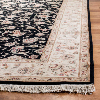 Discover timeless elegance with our stunning 9' X 12' large rectangle area rug, a perfect amalgamation of opulence and craftsmanship. Rendered in a captivating black and ivory color palette, this luxurious piece adds a touch of sophistication to any living space. The intricate rug pattern, showcasing a traditional floral motif, blends seamlessly with both contemporary and classic interiors.
