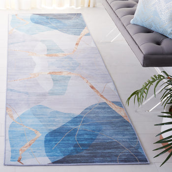 Proudly made in China, our rug encapsulates the essence of modern styling while providing functional benefits. Whether you're looking to add a touch of sophistication or simply seeking a high-quality, easy-care floor covering, our blue and gold contemporary area rug is sure to exceed your expectations.