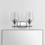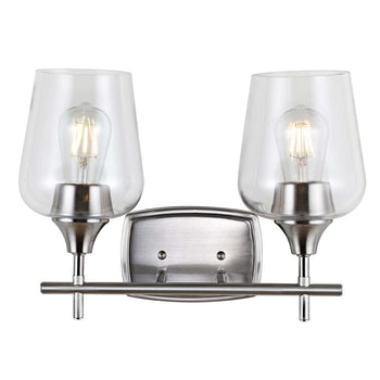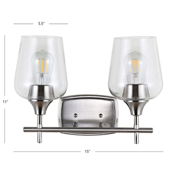 Designed to infuse twice the luminous glow into any space, this dual light wall sconce is an investment in style. Perfect for in the bathroom, hall or living room, its gentle glass curves complement its smooth, nickel and brass finishes and clean lines.