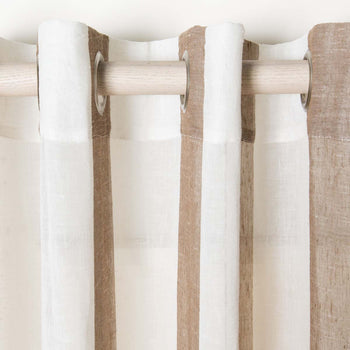 Contemporary classics, the subtle sophistication of these deluxe sheer beige drapes updates any Decor. Finely crafted with a polyester/linen blend and 8 grommet rings per panel, natural light filters through with ease. Designers love their versatility.