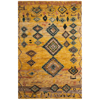 Expertly constructed using the finest jute, this rug not only brings warmth and texture to your space but also ensures durability for years of enjoyment. The gold color serves as the canvas for a mesmerizing pattern that showcases intricate designs and cultural richness.