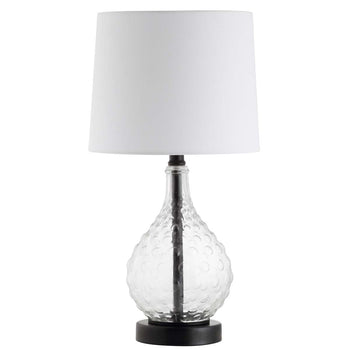 Bring modern luxury to the living room with this Targari Table Lamp. Designed to highlight the finely crafted texture on its clear glass body, Targari's black metallic finish and sleek white shade ensures it coordinates with any Decor.