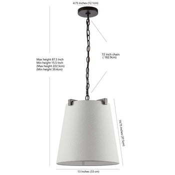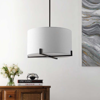 This Tarlon Pendant Light transforms the classic style of a standing floor lamp for smart overhead illumination. Tarlon features a timeless off white cotton drum shade held aloft by an oil rubbed bronze frame, making it ideal for casting a soft glow in any interior.