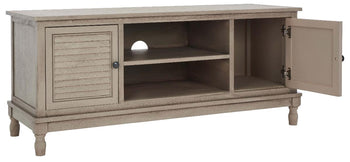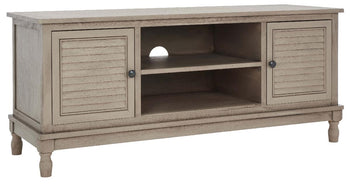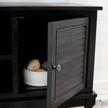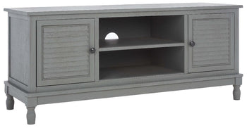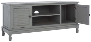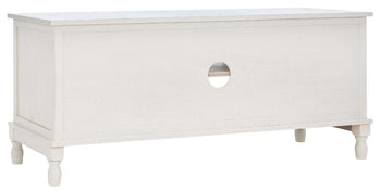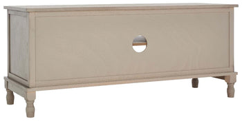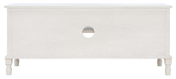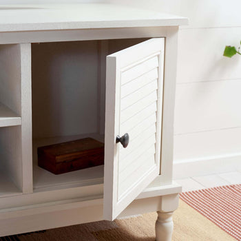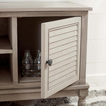 Timeless traditional details are given a classic contemporary twist in this Tate Media Stand. Designed to perfectly accent any entertainment space in a neutral distressed white finish, Tate's open shelf is ideal for electronics or consoles, and two doors provide ample storage for movies, games, or unsightly wires.