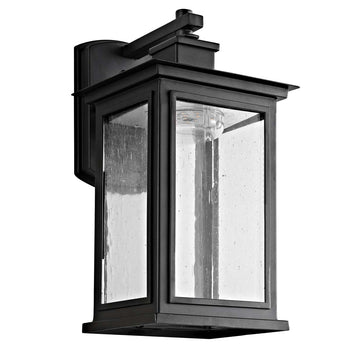 A permanent invitation to family and friends, this timeless rectangular outdoor wall lantern updates any home exterior. Its stunning clear seeded glass diffuses the welcoming glow of its radiant orb bulb. Its durable metal construction makes it a classic.
