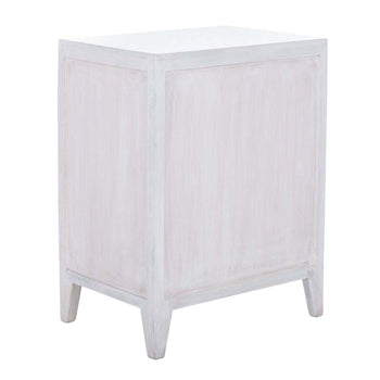Take a magical journey to distant lands and exotic locales with this captivating 1 door carved nightstand. A contemporary heirloom, the gorgeous intricately carved pattern on its white wash wood door instantly transforms any bedroom into a luxurious retreat.