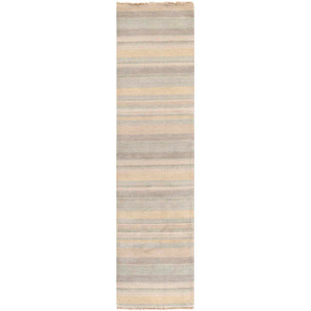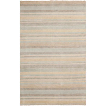 Neutral and pastel tones soften the geometry of this transitional multi-stripe Tibetan rug by Safavieh. Hand-knotted of high mountain wool, this casual, understated rug is equally appropriate for rustic and urban dwellings.