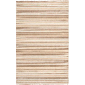 Pale natural earth tones soften the geometry of this transitional multi-stripe Tibetan rug by Safavieh. Hand-knotted of high mountain wool, this casual, understated rug is equally appropriate for rustic and urban dwellings.