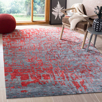 Enhance your space with the delicate artistry and soft, grey palette of our hand-knotted area rug. Crafted in India, this 6' X 9' medium rectangle rug boasts a plush 1/2" pile height that invites you to step onto its luxurious blend of 70% viscose and 30% cotton. Its unique pattern features a contemporary mix of grey tones intertwined with subtle yet vibrant splashes of color that create a stunning abstract design, reminiscent of an artist?s brushstrokes or an urban landscape. This rug is a testament to traditional craftsmanship, seamlessly blending with modern style to bring a touch of sophistication and comfort to any room in your home.