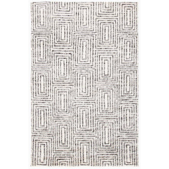 Featuring a modern contemporary style, the rug is adorned with an abstract geometric pattern that captivates the eye. The contrasting black and ivory colors create a striking visual that can complement a wide range of interior decors, adding a touch of sophistication to any room.