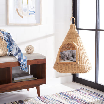 We all know the cat's is the one that should have the deed to your home, so why not give your feline the same amount of style and luxury as the rest of your decor? This Tifa Cat Bed offers endless comfort with a white-cotton blend cushion, and its natural honey rattan is effortlessly chic. Tifa can be hung for your cat's ever-changing moods.