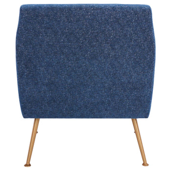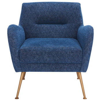 Embrace the art of relaxation in style with this Tilbrook Armchair. Sloped arms and a classic wraparound profile in plush navy upholstery envelop you in stylish luxury, while gold retro legs give Tilbrook a touch of Mid-Century glam.