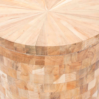 The Tioga Stool pairs a chic geometric pattern with organic style. Its reclaimed teak with light maple finish brings just the right amount of whimsy to a stark, minimalist room, yet feels just as at home with modern decor.