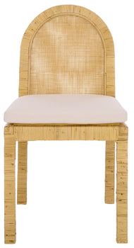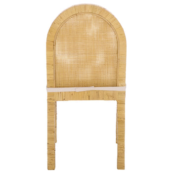 Introducing the Tojo Cane Rounded Back Dining Chair in a soothing blend of natural and white tones. Crafted from sturdy Lesio and mango wood, this chair embodies elegance and durability. The combination of its rounded back and cane detailing offers a comfortable and inviting seating experience for any dining area. The natural wood finish paired with the white accents enhances its timeless design, making it a versatile choice for both contemporary and classic interiors. Its sophisticated silhouette is crafted to seamlessly fit any dining space, while providing a touch of charm and grace. Whether you are hosting a dinner party or enjoying a quiet meal at home, this chair will elevate your dining experience, adding style and comfort to every occasion. Transform your dining room with the Tojo Cane Rounded Back Dining Chair, where elegance meets functionality in the most understated yet delightful way. Bring a touch of nature into your home with this exquisite piece.