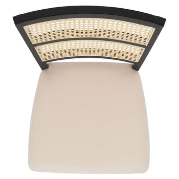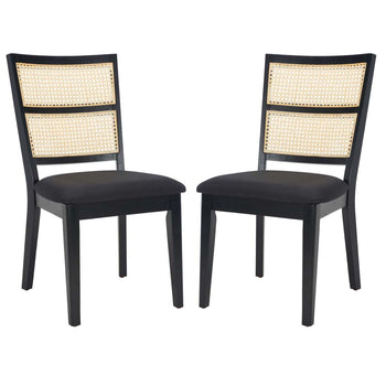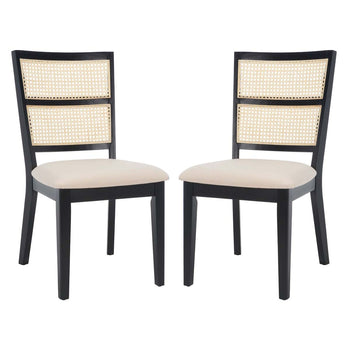 A french country classic is reimagined for today's contemporary decor in this chic toril dining chair. Featuring a timeless frame in a gorgeous finish, Toril's familiar charm is upgraded with a stylish natural rattan back and fabric seat, instantly refreshing any dining area. Sold in sets of two.