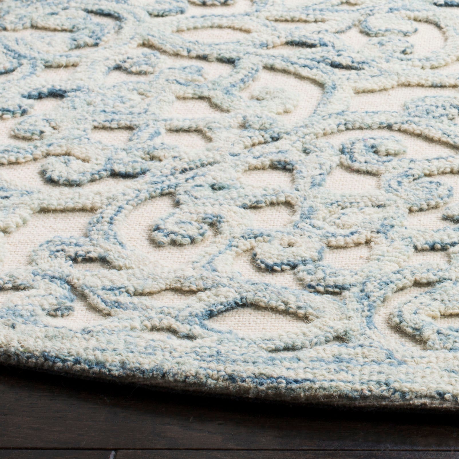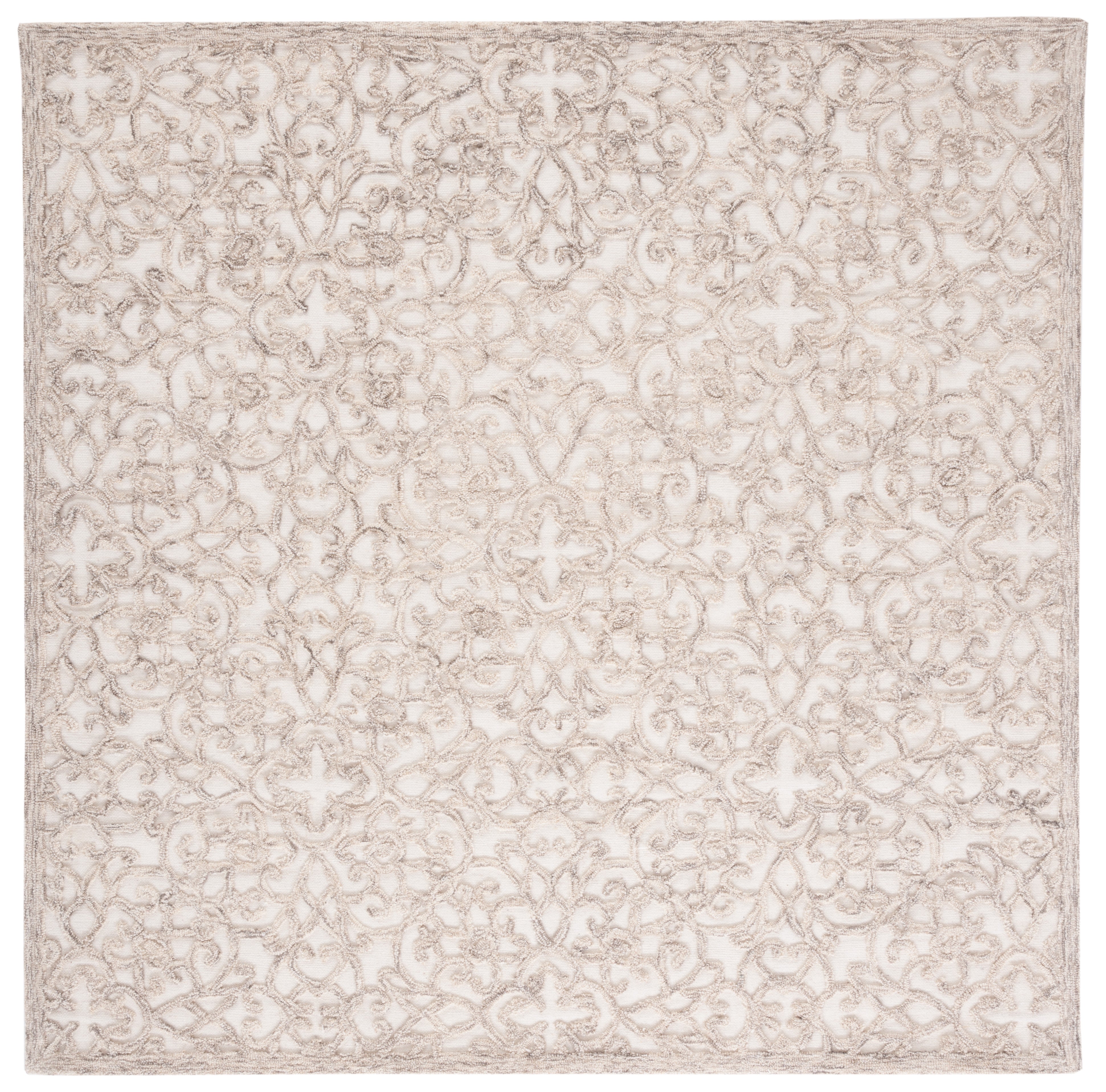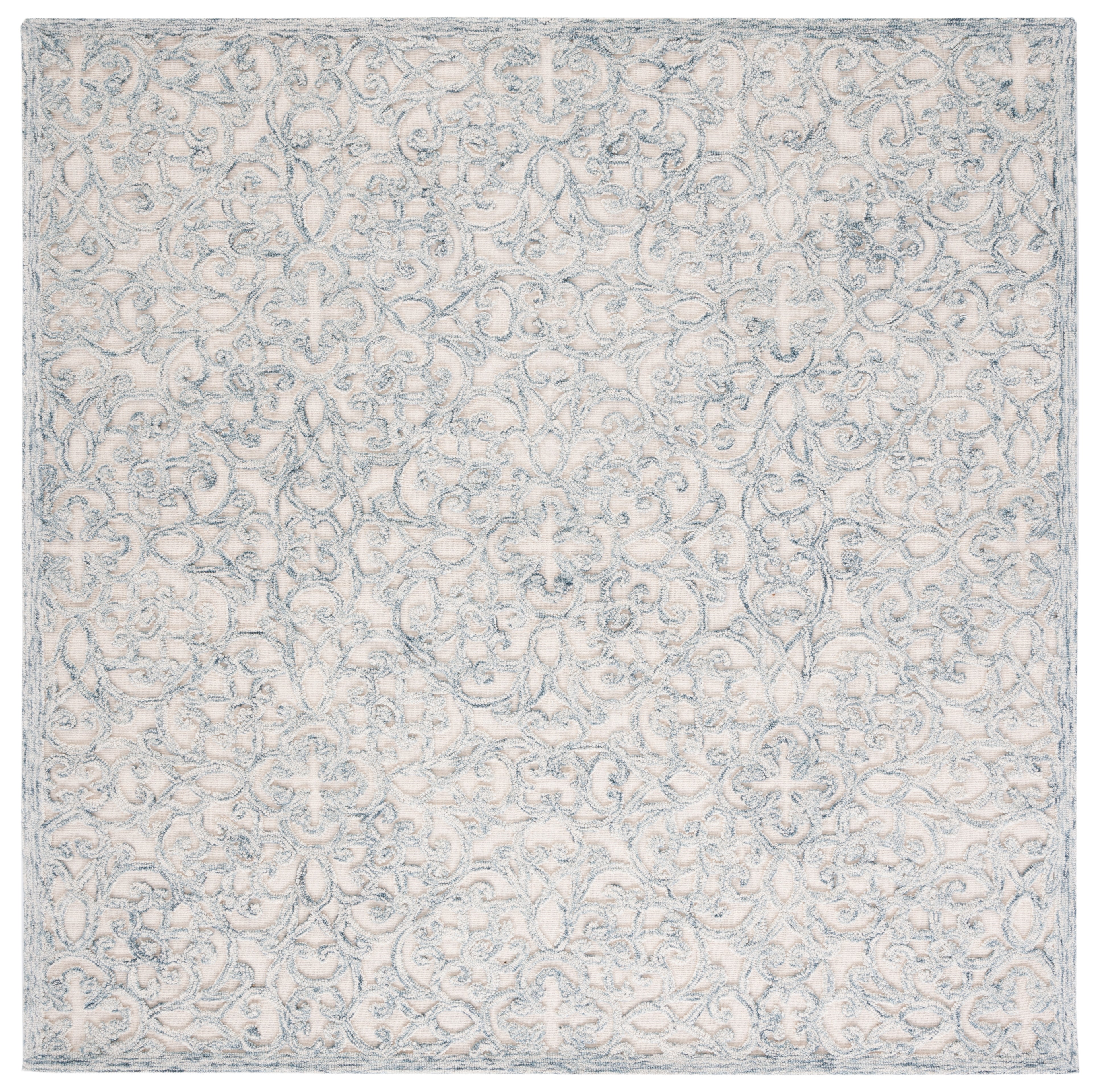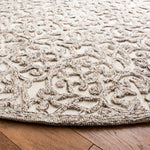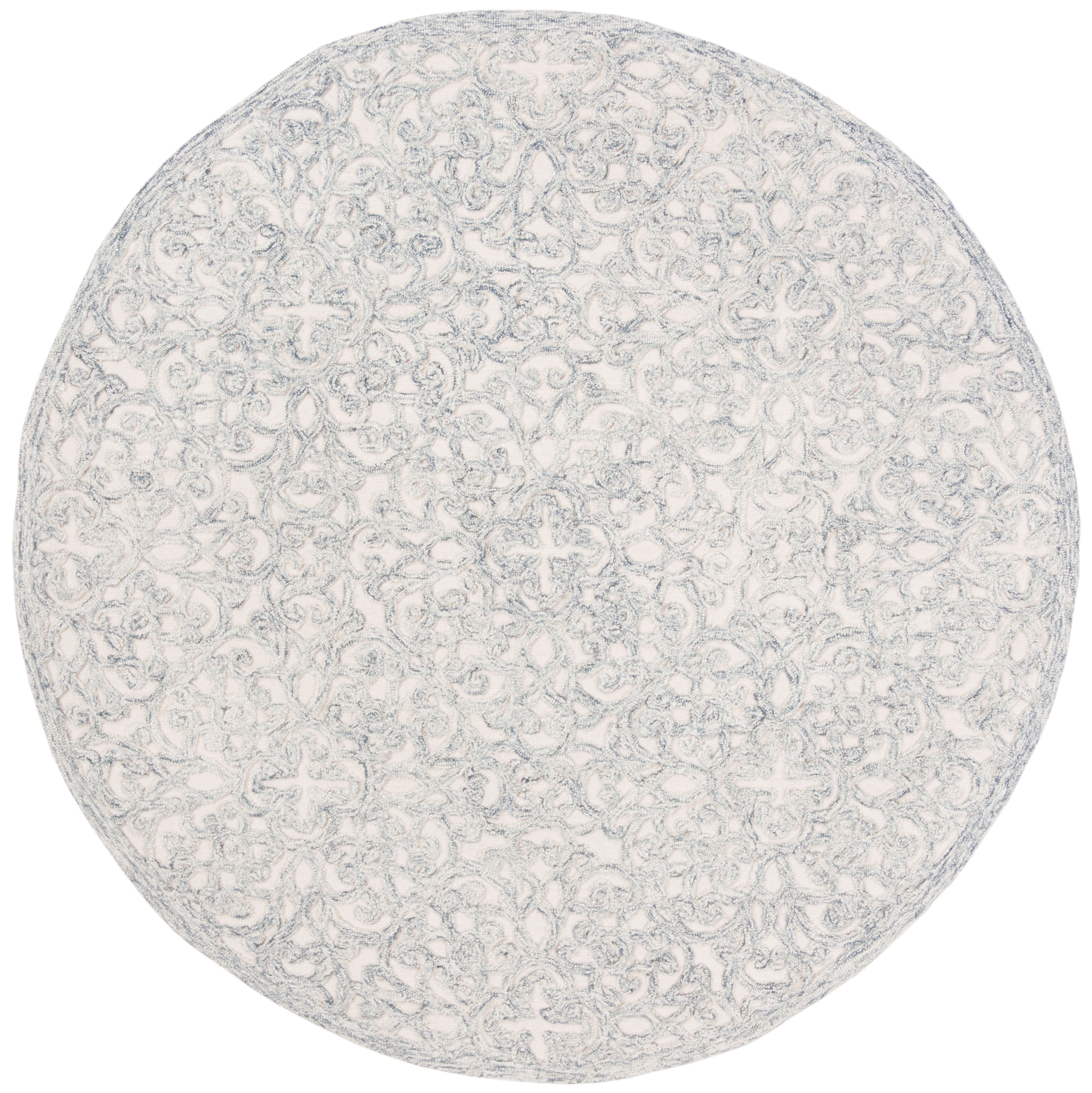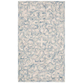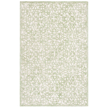The intricate pattern displayed on the rug exudes a classical charm, featuring an array of ornate florals and elegant scrollwork. Each curve and contour is hand-tufted to perfection, ensuring a unique piece of artistry for your floor.