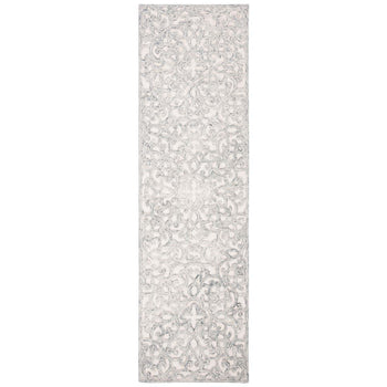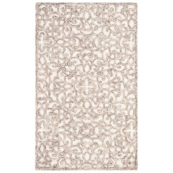 The intricate pattern displayed on the rug exudes a classical charm, featuring an array of ornate florals and elegant scrollwork. Each curve and contour is hand-tufted to perfection, ensuring a unique piece of artistry for your floor.