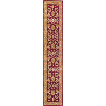 Enhance the artistic allure and cozy comfort of any space with this 4' X 4' round area rug. Bask in the radiant fusion of rich RED and luxurious GOLD that instantly livens up your home or office decor. Immaculately crafted from premium WOOL PILE, this rug promises both lavish softness underfoot and superior durability. Hailing from CHINA, it boasts expert craftsmanship using a specialist technique ensuring quality that stands the test of time. Give your floors the star treatment with this magical blend of color, comfort, and charm. Laid out flat, it makes a stunning addition to your interior design scheme, inviting appreciation and offering indulgent comfort. Step onto elegance with this exquisite area rug.