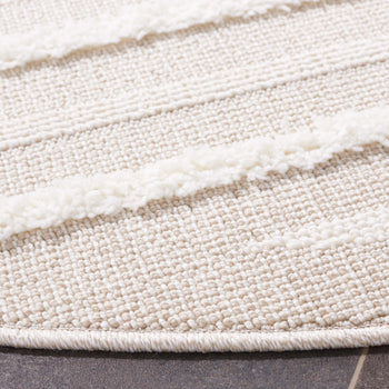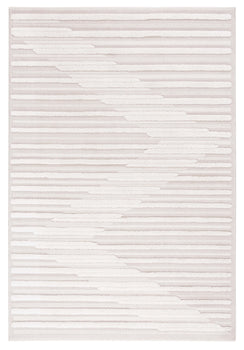 The rug's composition of 70% polyester and 30% polypropylene ensures both durability and a luxurious feel underfoot, perfectly blending resilience with a soft texture. Designed to complement a contemporary aesthetic, the subtle beige and ivory hues blend harmoniously with a versatile pattern that infuses a sense of modern tranquility into your home.