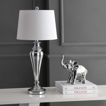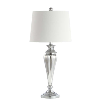 Inspired by posh Park Avenue style, this sophisticated table lamp adds timeless grace and charm to any room. Often used on pairs, its dramatic fluted sliver body it topped with a matching regal finial. The warm glow of its cotton shade makes it a classic.