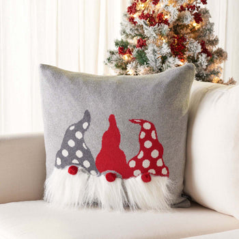 Without his hardworking helpers, Santa might be in a whole heap of trouble every time December rolls around, and this darling Trio Elves Pillow celebrates the little heroes of the North Pole's workshop. Red pompom noses and textured fluffy white beards make it a perfectly playful addition to any holiday Decor.