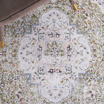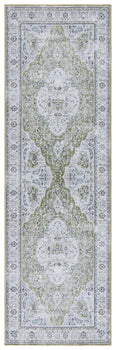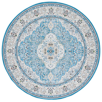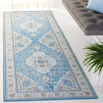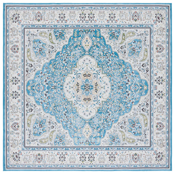 Boasting a beautiful pattern with intricate designs and floral elements, it showcases a sophisticated turquoise and beige color palette that will complement a variety of decor themes. The rug's borders frame the central medallion with an array of detailed motifs, adding a touch of luxury and visual interest to your home.