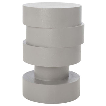 Give a playful update to your living area with our accent table. Round discs are stacked to deliver an artisanal accent for your home. With a unique and whimsical design, our end table feels fresh and modern in any setting. It is adorned in a tasteful shade of grey to serve as the perfect complement to your contemporary home.