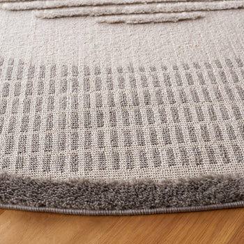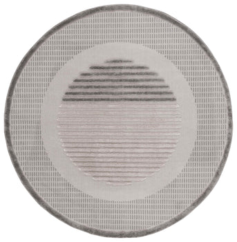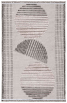Elevate your living space with this impeccably crafted 4' X 6' area rug, a harmonious blend of modern style and timeless comfort. Constructed in Turkey with meticulous precision, this rug features a power-loomed technique that ensures durability and a touch of sophistication in every thread. Its modern design showcases a captivating pattern of contrasting circles and textured lines, set against a plush grey and light grey backdrop that seamlessly complements a variety of decors.