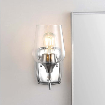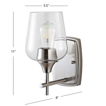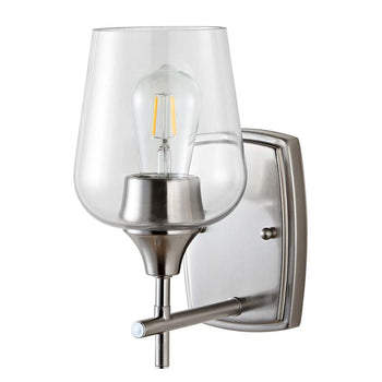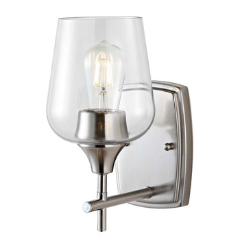 Elegant and inviting, this versatile wall sconce offers warm, gentle illumination in any interior. Ideal for a hall, bath or even a living room, it's finely crafted with a gorgeous nickel and brass finish, and a graceful glass shade for its single sconce.