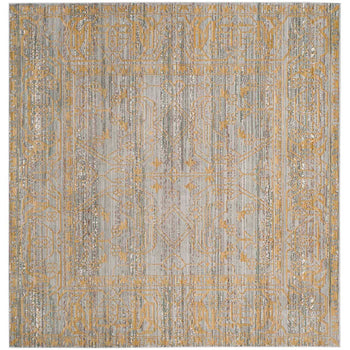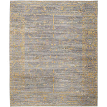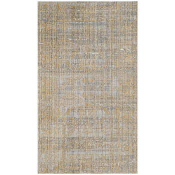 The rug's design features an intricate pattern with an appealing blend of grey and gold hues that creates a subtle yet luxurious ambiance. Its detailed motif draws inspiration from classic designs, infusing your home with a sense of history and opulence without overwhelming your decor. Whether placed in your entryway, office, or as an accent piece in your living area, this rug is sure to capture attention and blend seamlessly with a variety of interior styles.