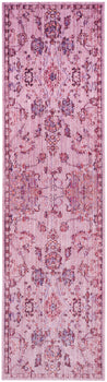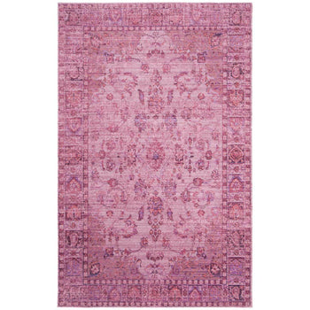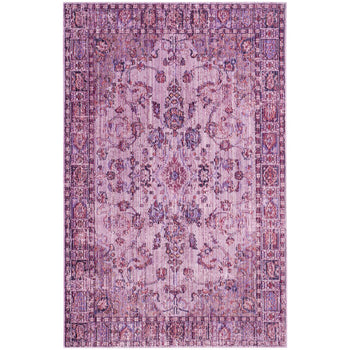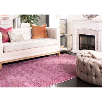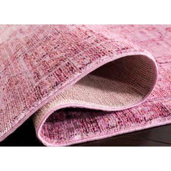 Vibrant shades of pink energize traditional Persian floral motifs in this watercolor-inspired floor decor. Fashion-forward and utterly chic, this trend-setting look is power-loomed using silky-smooth synthetic yarns for a striking, designer-smart look perfect for contemporary or transitional home furnishings. Neatly serged edges add a finely detailed finishing element to this stunning carpet.