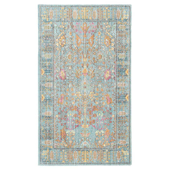 Elevate your space with the sophisticated charm of our 2' X 3' area rug, featuring a harmonious blend of grey and multi-color hues. This accent rug boasts a low pile height of 1/4" that offers a sleek appearance and is easy to maintain, making it a practical choice for high-traffic areas. Crafted in Turkey using a power-loomed technique, the rug is made from high-quality polyester, ensuring durability and a soft touch underfoot.