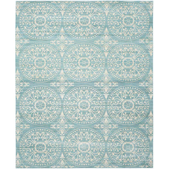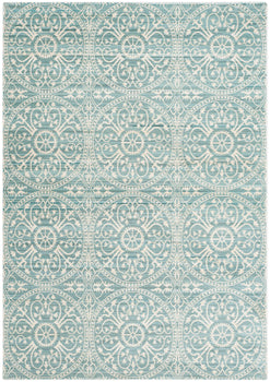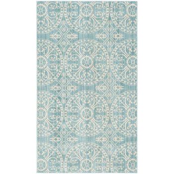 Elevate your home decor with this sophisticated 3 foot by 5 foot Alpine and Cream area rug. Designed in a small rectangle shape, this rug boasts a beautiful pattern that features an intricate blend of geometric and ornate motifs. The light cream designs elegantly contrast against the serene alpine blue background, evoking a sense of calm and elegance in any room.