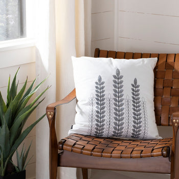 The Valorie Vine Pillow epitomizes simple elegance with a spray of natural imagery and airy background. A welcome accent accessory ideally styled for a country bench, living room sofa or the den, Valorie adds a wonderful sense of natural open space to roo