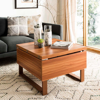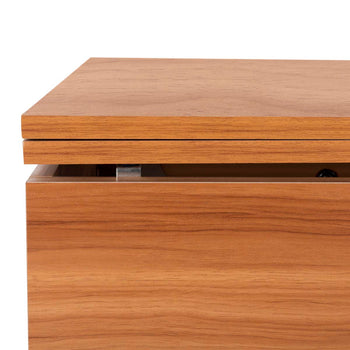 This lift top coffee table was designed to recreate the contemporary furnishings that outfit the inner sanctuary of an iconic British designer. Designed to accommodate life's accoutrements, the depth of its walnut finish makes it an instant classic.