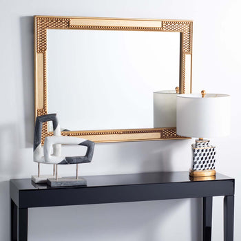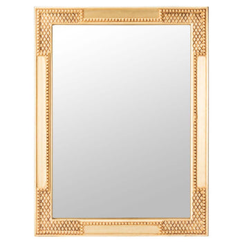 This regal Velmin Mirror is styled after brilliantly carved frames accenting the antique portraits of French royalty. Velmin's rich texture and golden olive finish take inspiration from classic Baroque details, imbuing any living space with an air of sophisticated finery.