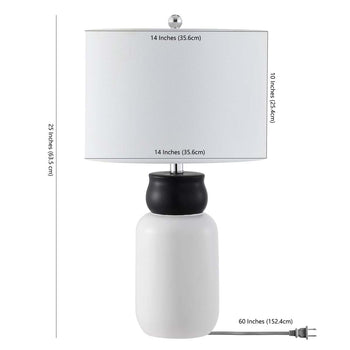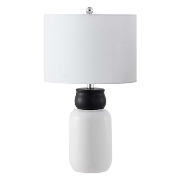 A statement piece for the cultured collector, this Ventrus Table Lamp takes its inspiration from dig sites at ancient cities. Ventrus flaunts decorative asymmetry in its black and white silhouette, topped with a crisp white shade for a contemporary look.