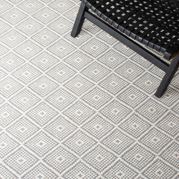 Made with care in India, the rug's hand-loomed construction guarantees meticulous attention to detail and quality. The design features a harmonious pattern of diamonds and dots, creating a sense of rhythm and subtle sophistication in your living area, bedroom, or study.