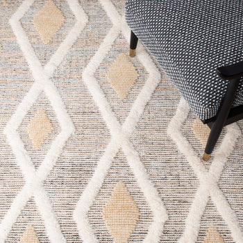 The rug's pattern, inspired by the image provided, features a contemporary diamond design that strikes a perfect balance between modern aesthetics and timeless charm. The intricately outlined diamonds in ivory create a sense of dimension and texture, making this rug an ideal choice for anyone looking to add an element of refined style to their decor.